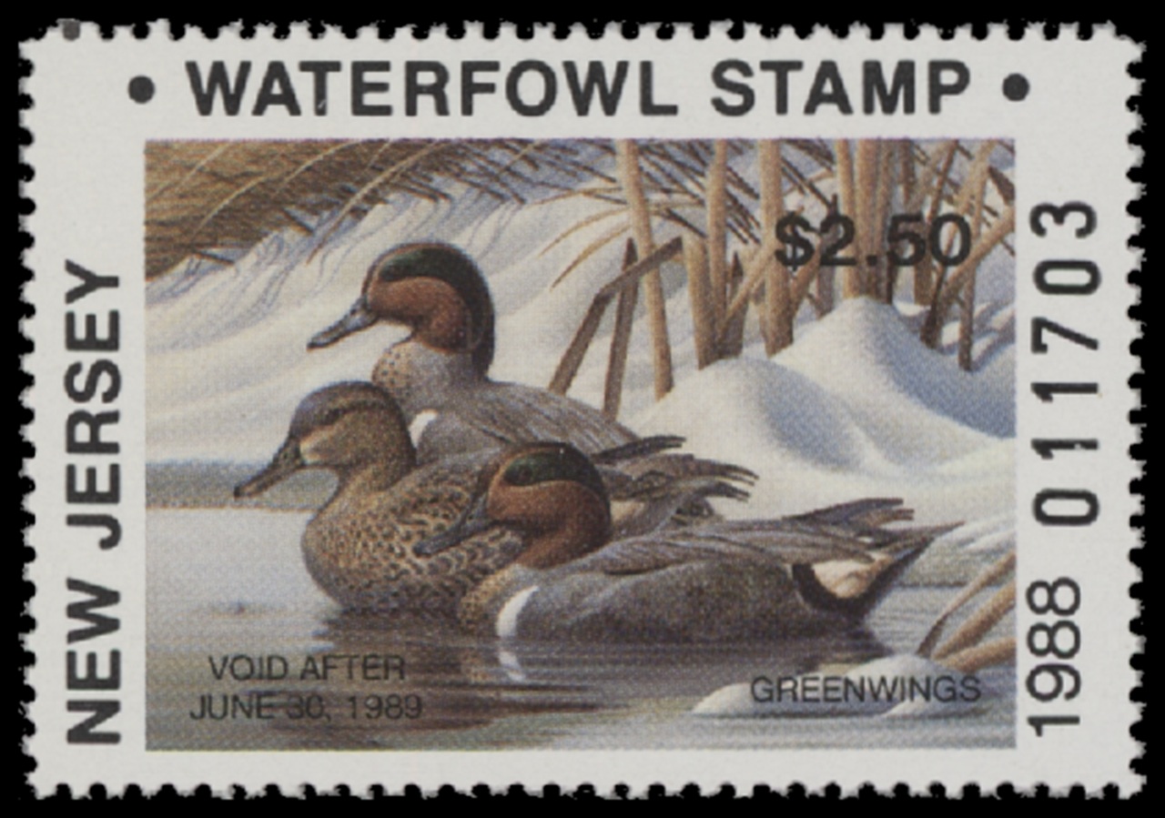 NJ5 1988 State Duck Stamp. Mint Never Hinged. Very Fine.