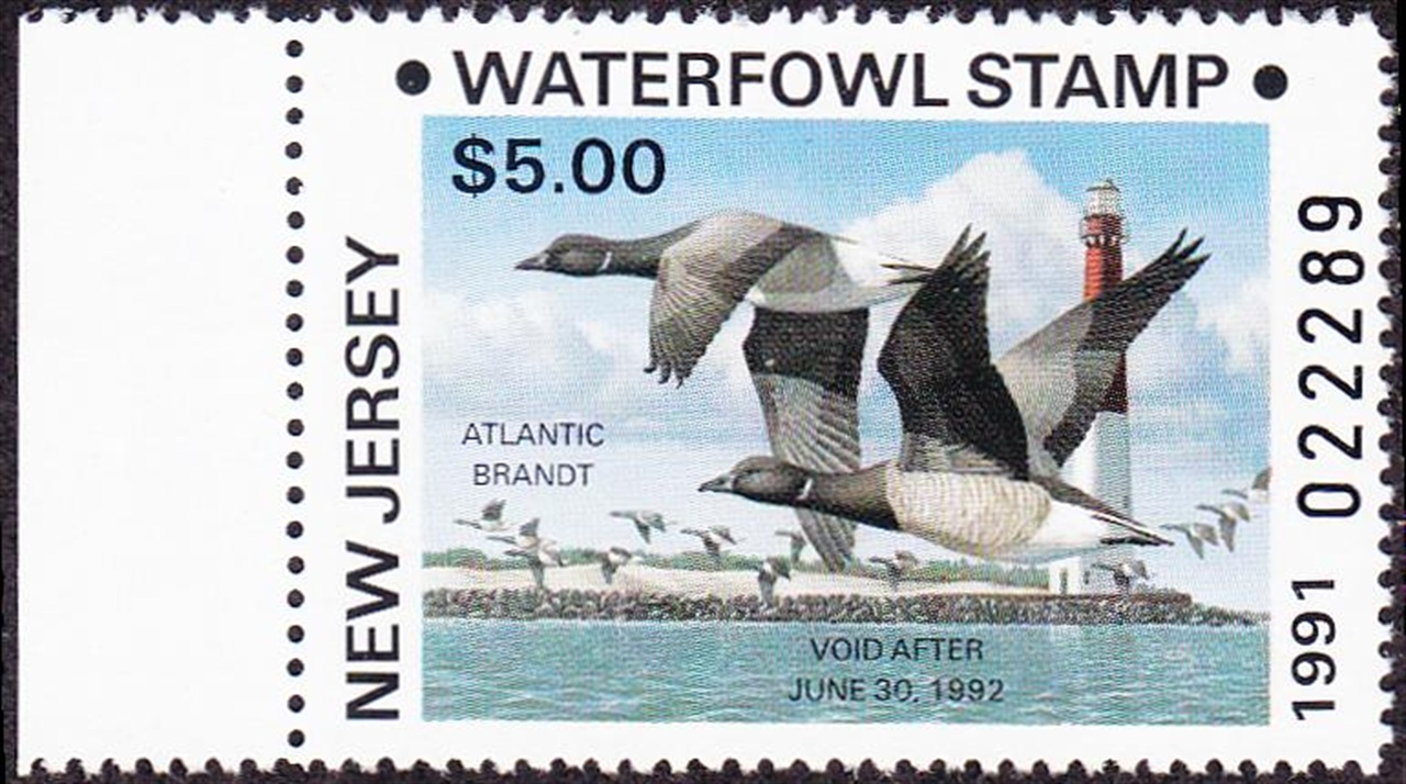 NJ8A 1991 State Duck Stamp. Mint Never Hinged. Very Fine. Altantic "Brandt" Error (should be Brant).