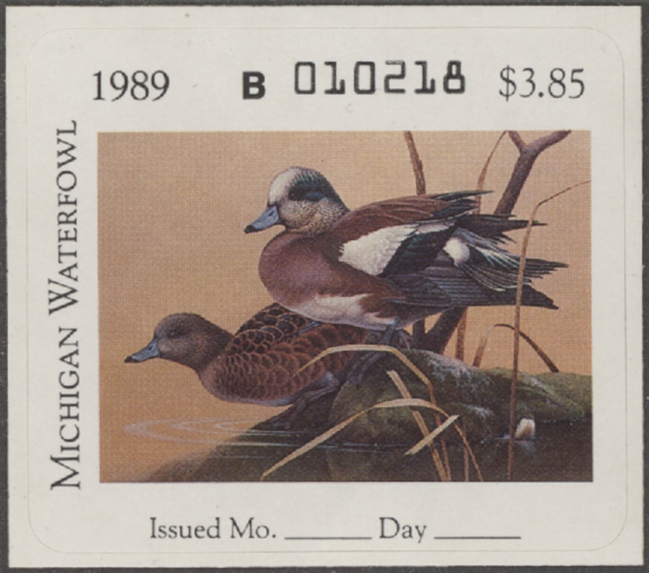 MI14 1989 State Duck Stamp. Mint Never Hinged. Very Fine. Widgeons by Dietmar Krumrey.