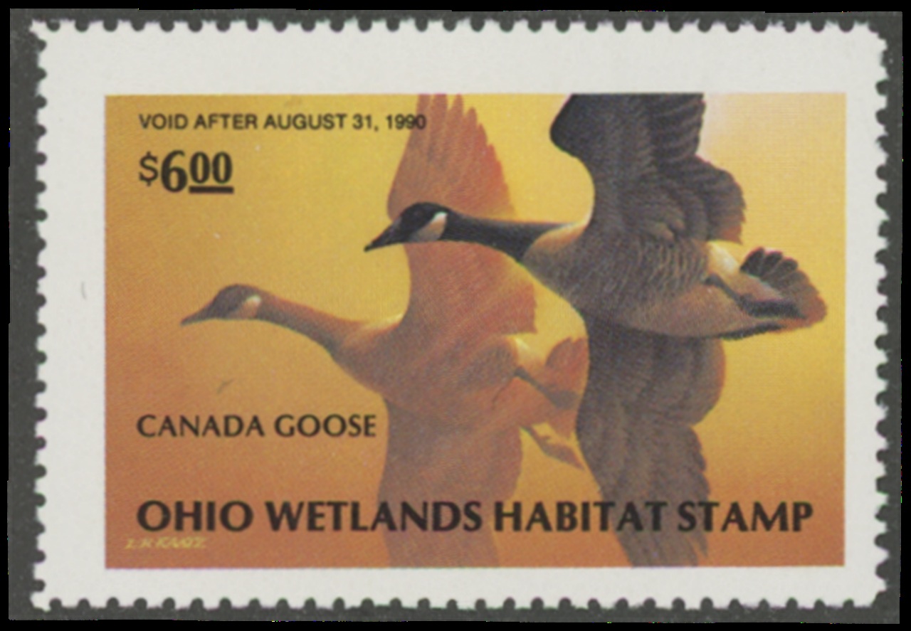 OH8 1989 State Duck Stamp. Mint Never Hinged. Very Fine. Canada Geese by Lynn R. Kaatz.