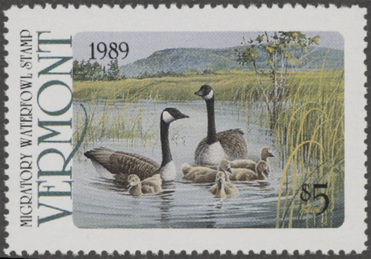 VT4 1989 State Duck Stamp. Mint Never Hinged. Very Fine. Canada Geese by Jim Killen.