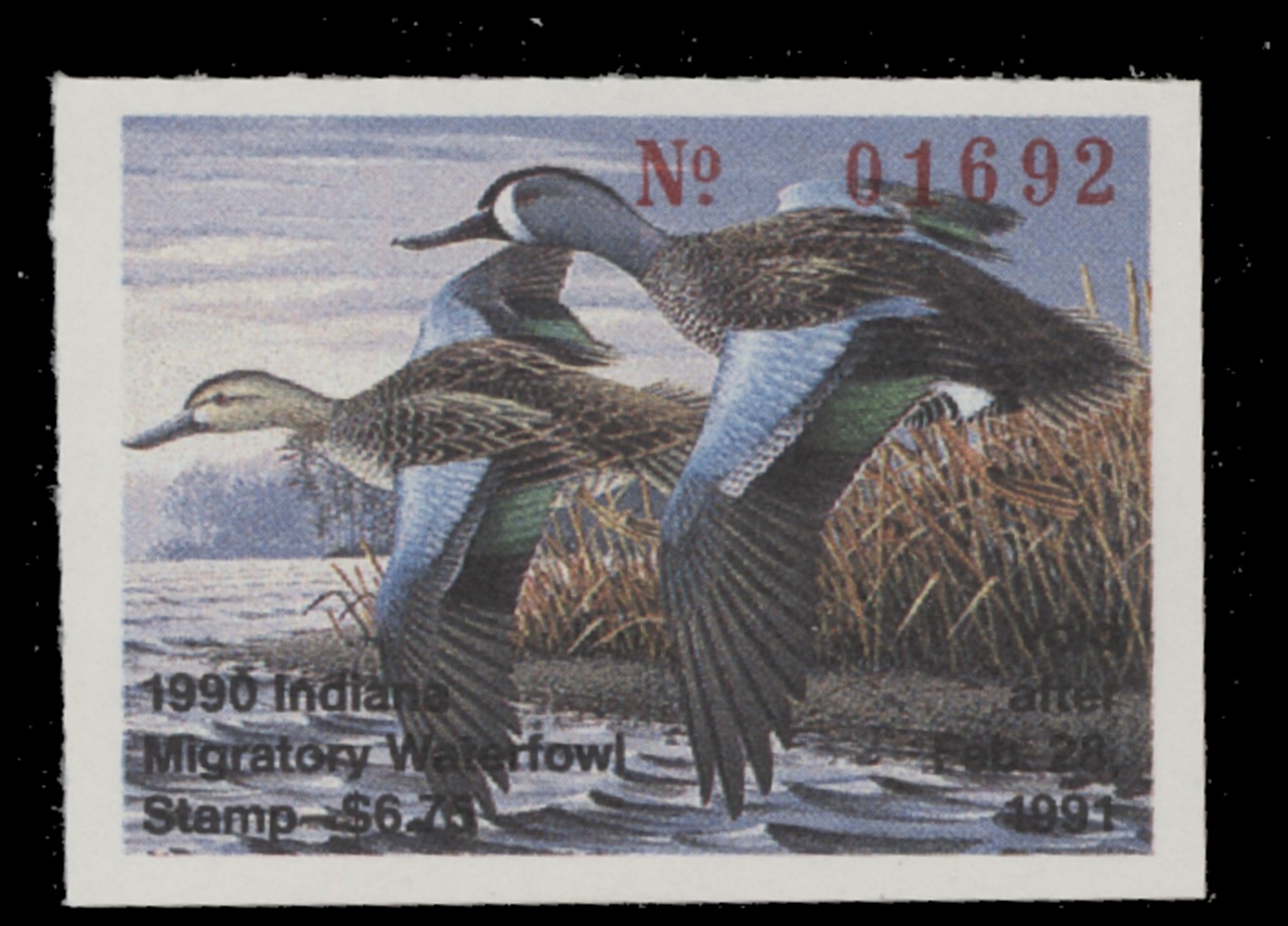 IN15 1990 State Duck Stamp. Mint Never Hinged. Very Fine. Blue-wing Teal by Ken Bucklew.