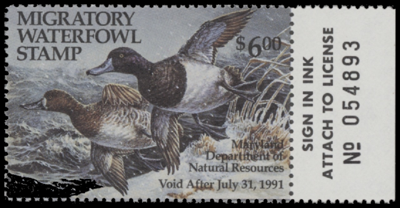 MD17 1990 State Duck Stamp. Mint Never Hinged. Very Fine. Lesser Scaup by Carla Huber.