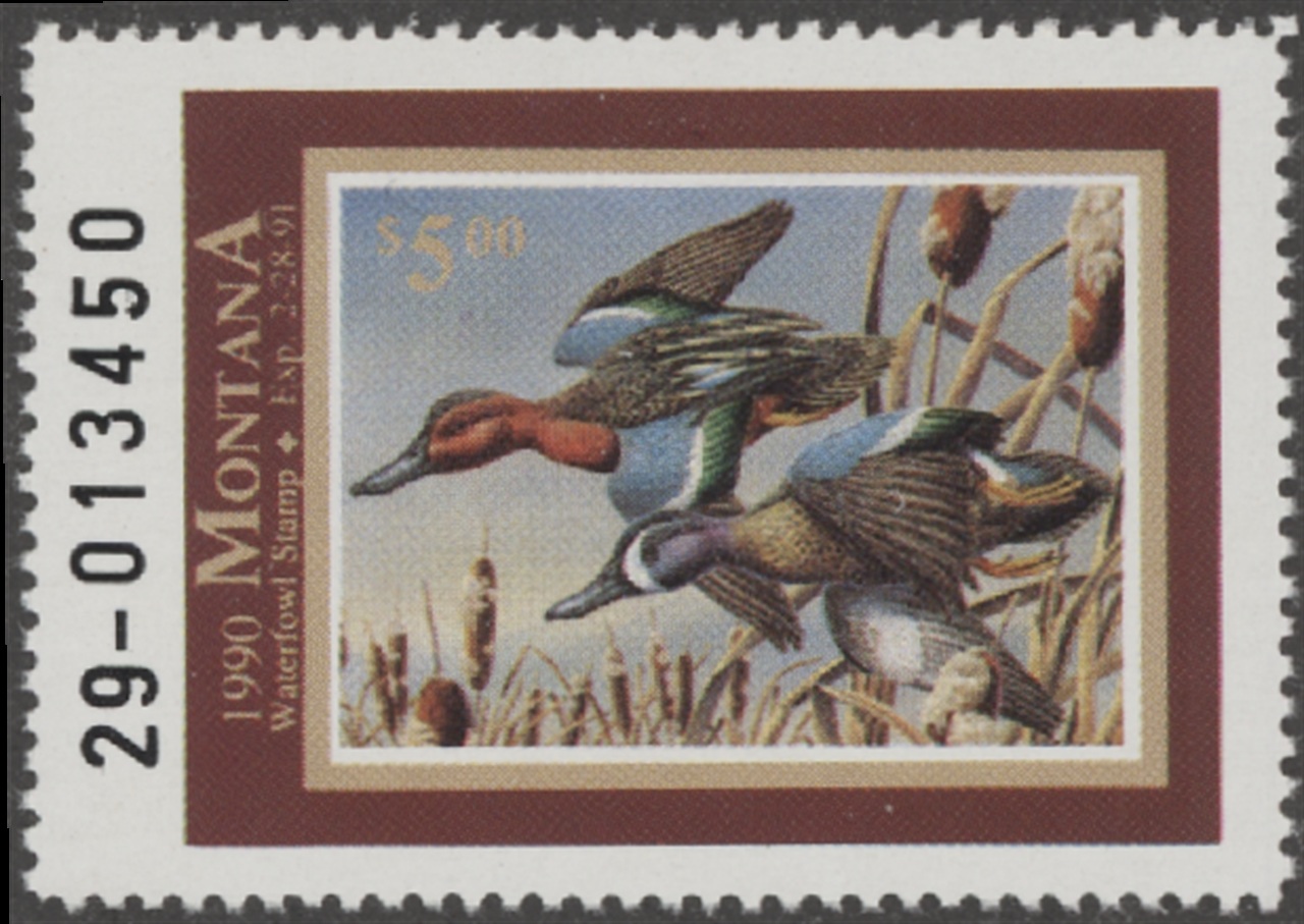 MT5 1990 State Duck Stamp. Mint Never Hinged. Very Fine. Cinnamon Teal by Joe Thornbrugh.