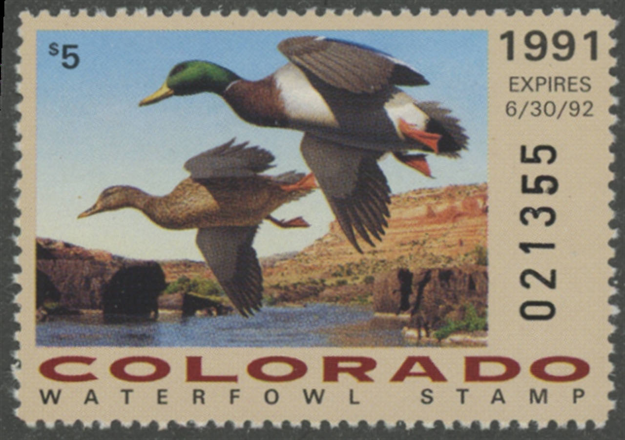 CO2 1991 State Duck Stamp. Mint Never Hinged. Very Fine. Pair of Mallards by Robert Steiner.