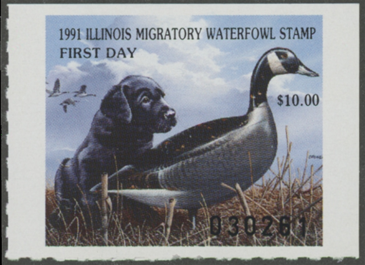IL17 1991 State Duck Stamp. Mint Never Hinged. Very Fine. "First Day" by Phillip Crowe.