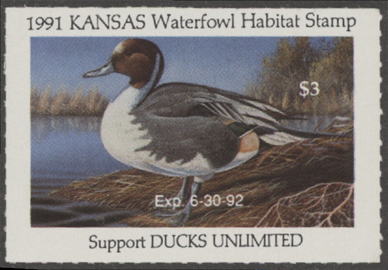 KS5 1991 State Duck Stamp. Mint Never Hinged. Very Fine. Drake Pintail by J. Byron Test.