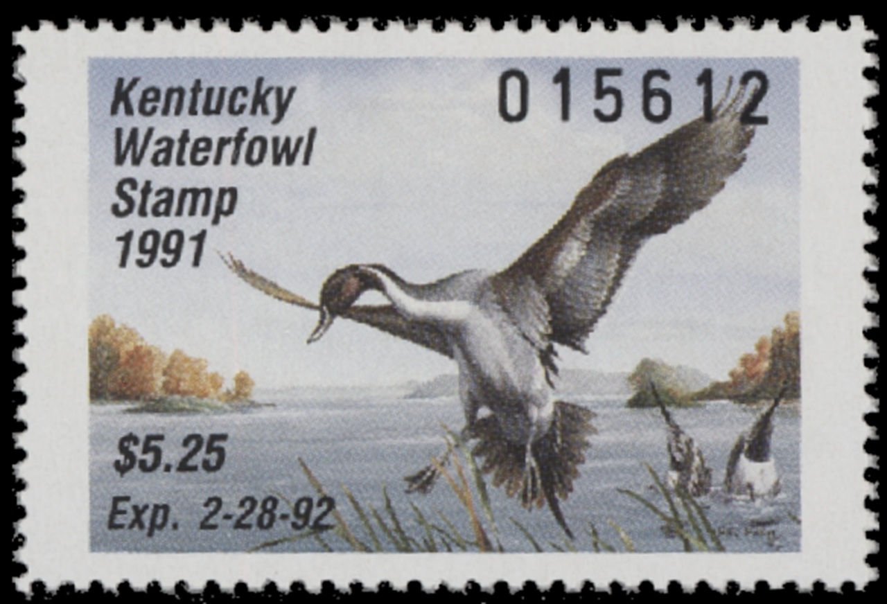 KY7 1991 State Duck Stamp. Mint Never Hinged. Very Fine. Pintails by Ray Harm.
