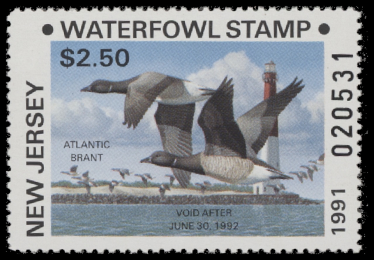 NJ8R 1991 State Duck Stamp. Mint Never Hinged. Very Fine. Atlantic Brant by Tom Hirata.