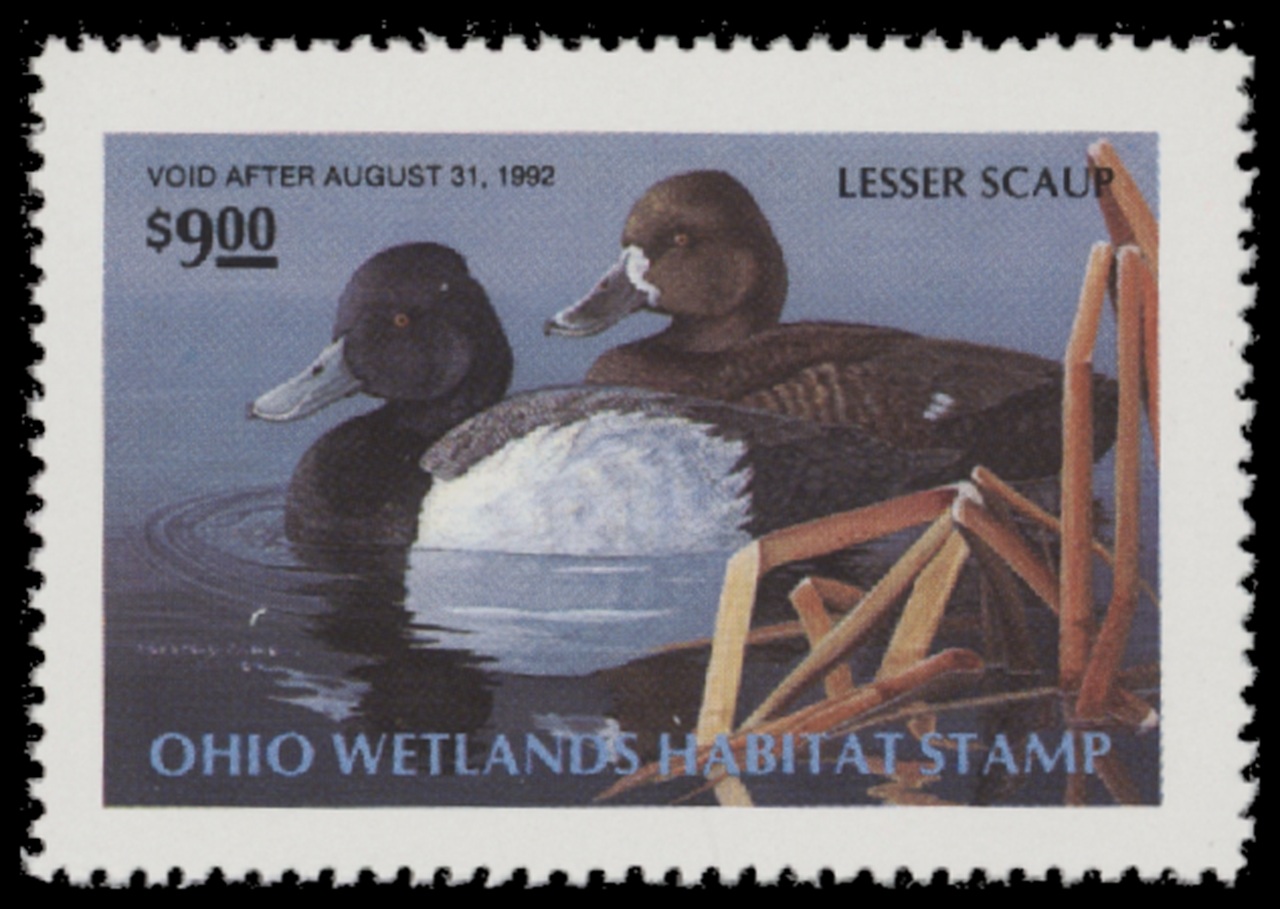 OH10 1991 State Duck Stamp. Mint Never Hinged. Very Fine. Lesser Scaup by Gregory Clair.