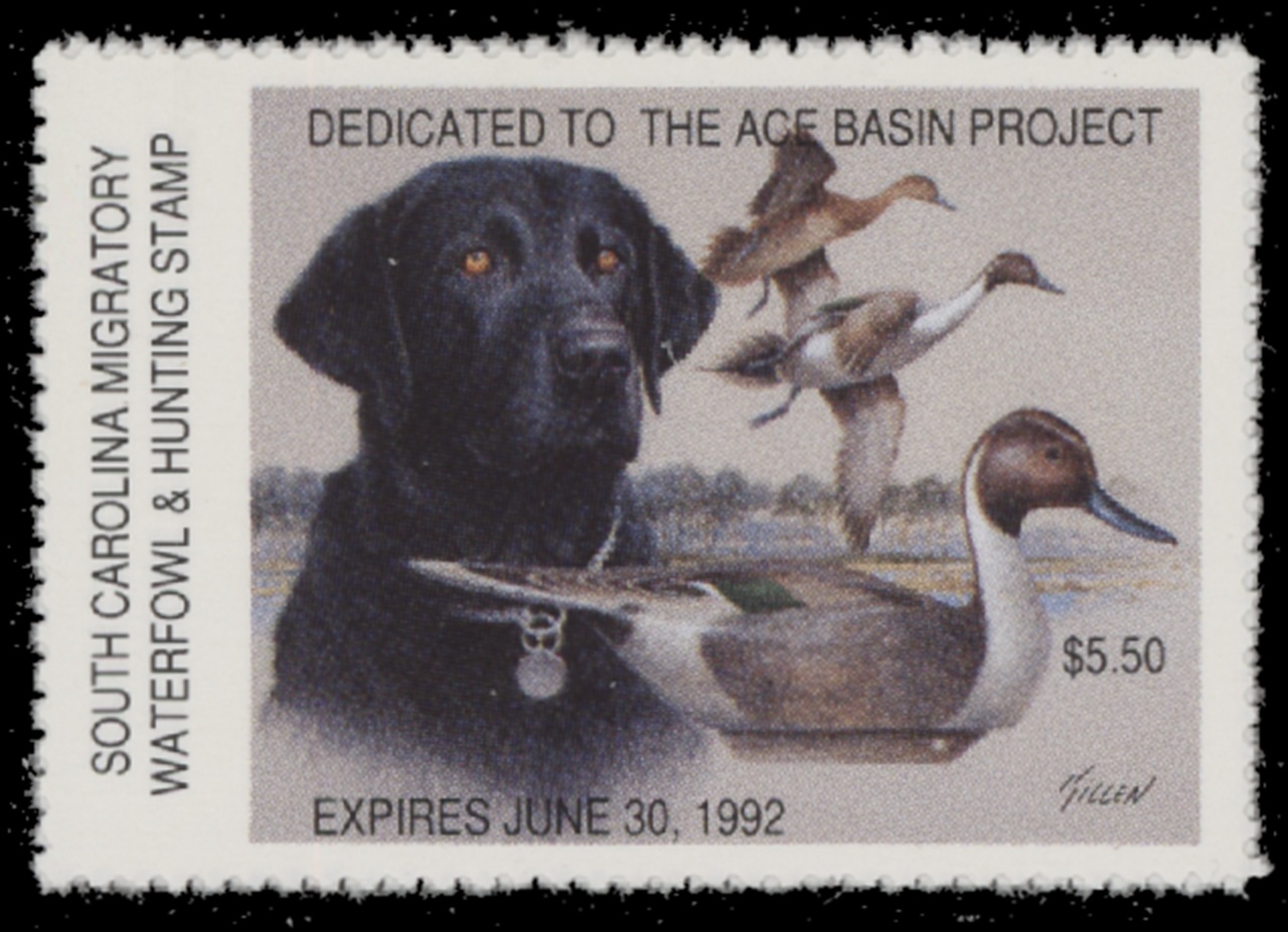 SC11 1991 State Duck Stamp. Mint Never Hinged. Very Fine. Labrador Retriever by Jim Killen.
