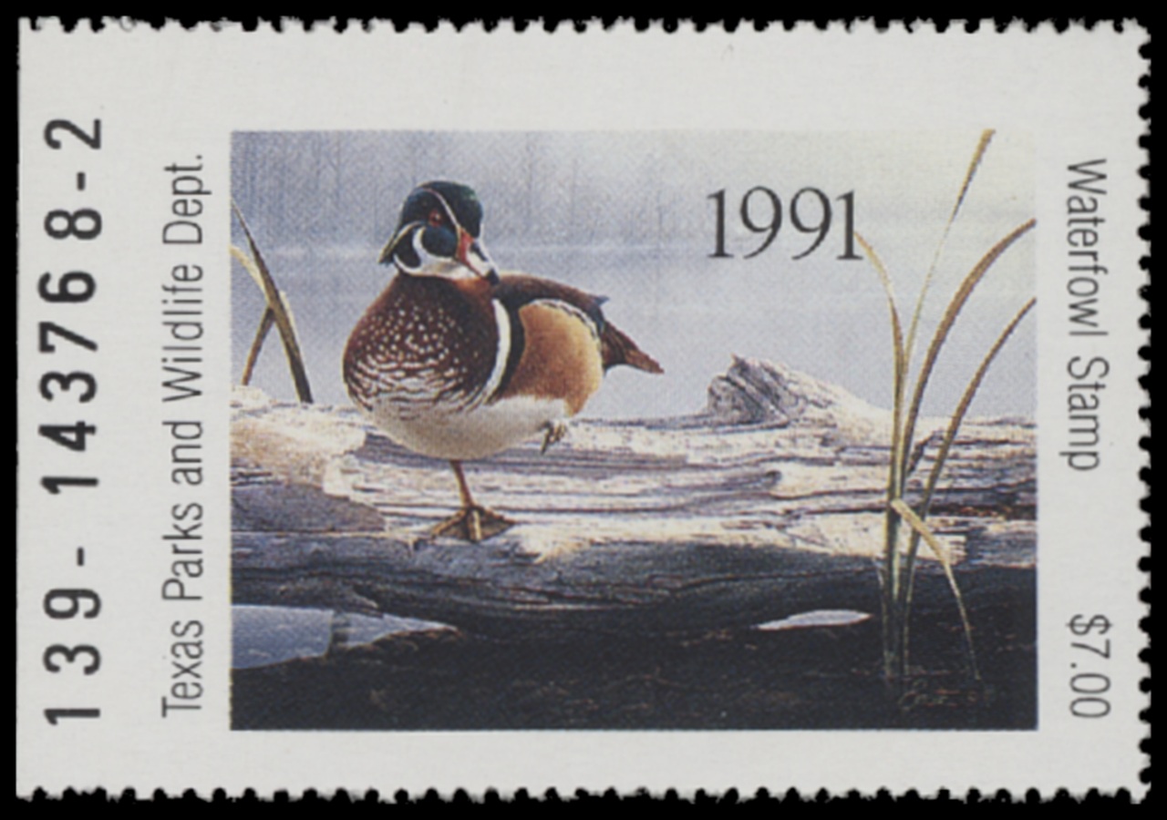 TX11 1991 State Duck Stamp. Mint Never Hinged. Very Fine. Wood Duck by Daniel Smith.
