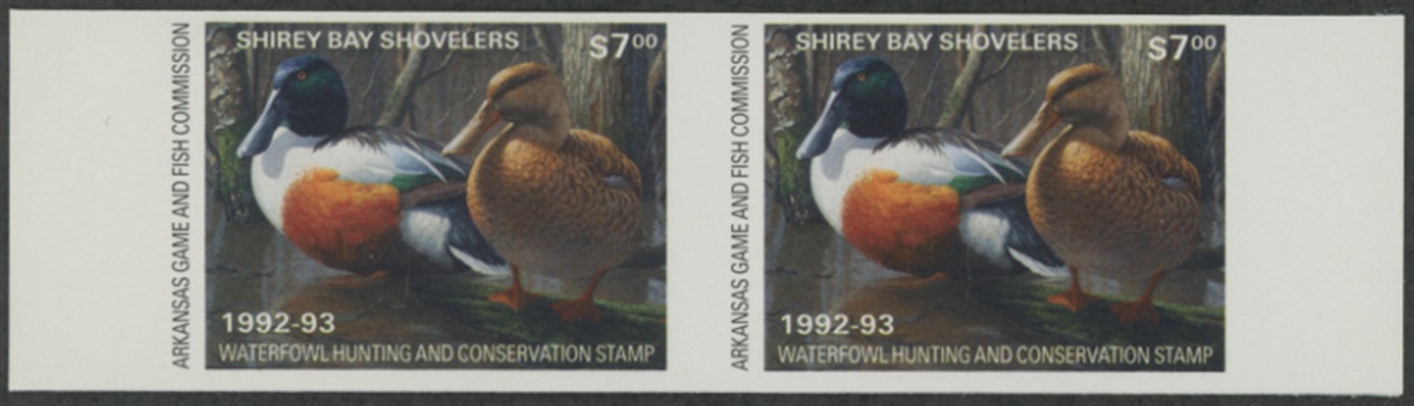AR12P 1992 State Duck Stamp Imperforate Proof Pair. Mint Never Hinged. Very Fine.