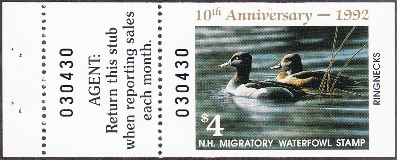 NH10A 1992 State Duck Stamp. Mint Never Hinged. Very Fine. Ring-necked Ducks by Richard Clifton.