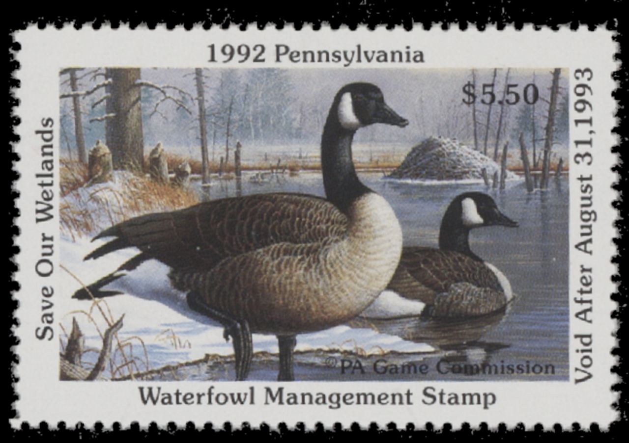 PA10 1992 State Duck Stamp. Mint Never Hinged. Very Fine. Canada Geese by Robert D. Sophick.