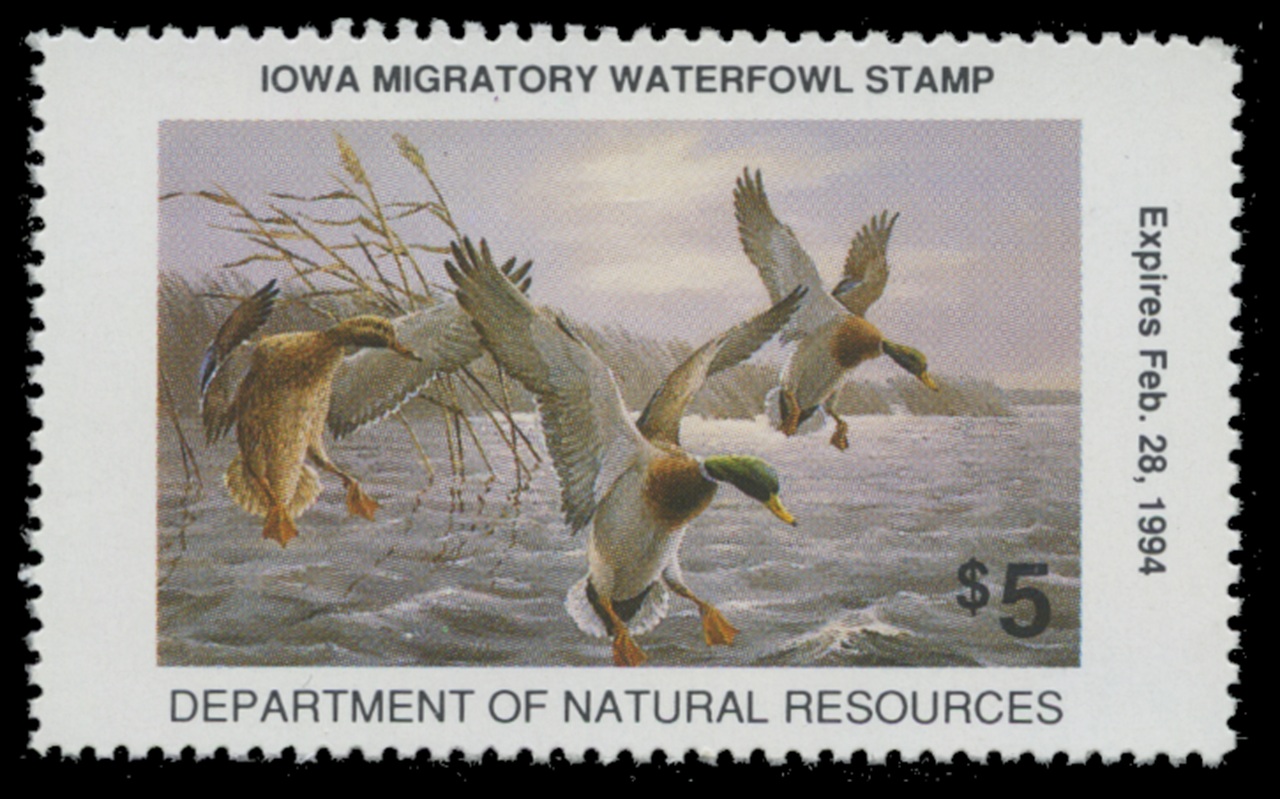 IA22 1993 State Duck Stamp. Mint Never Hinged. Very Fine. Mallards by Maynard Reece.