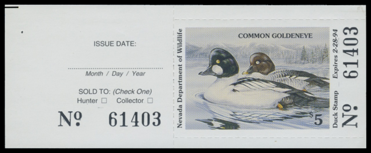 NV15H 1993 State Duck Stamp. Mint Never Hinged. Very Fine. Common Goldeneyes by Steve Hopkins.