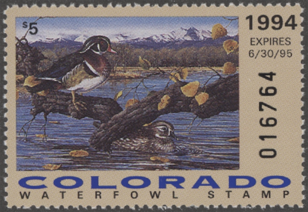 CO5 1994 State Duck Stamp. Mint Never Hinged. Very Fine. Pair of Wood Ducks by Sarah Woods.