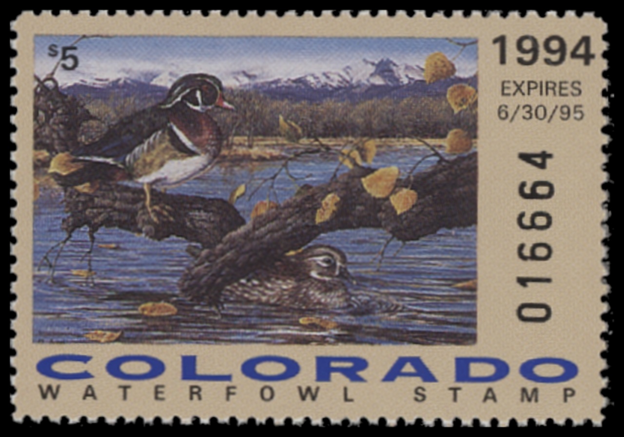 CO5 1994 State Duck Stamp. Mint Never Hinged. Very Fine. Pair of Wood Ducks by Sarah Woods.