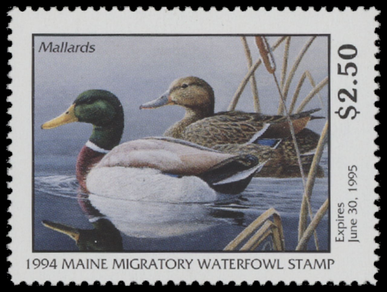 ME11 1994 State Duck Stamp. Mint Never Hinged. Very Fine. Mallards by Susan Jordan.