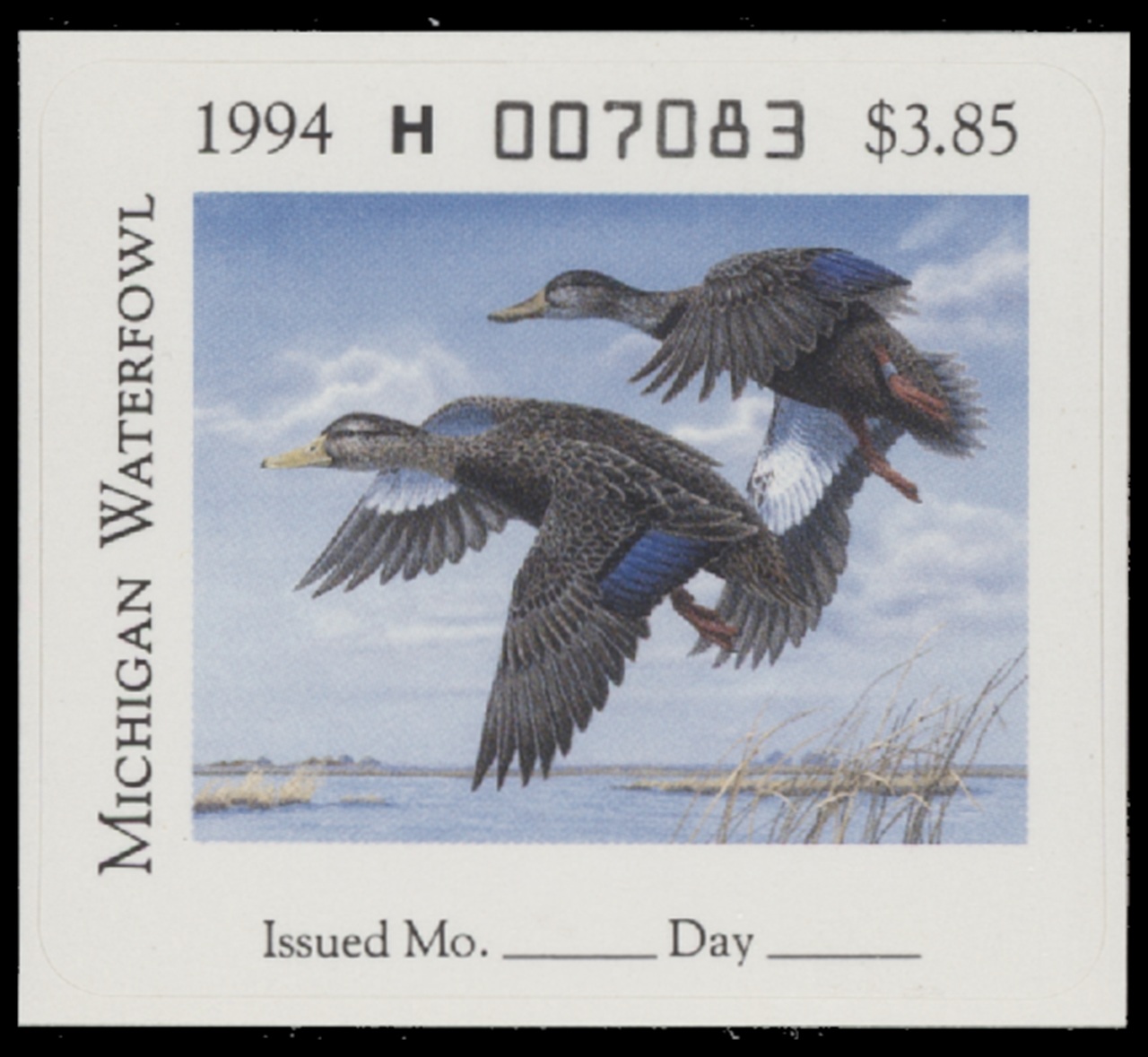 MI19 1994 State Duck Stamp. Mint Never Hinged. Very Fine. Black Ducks by David Bollman.