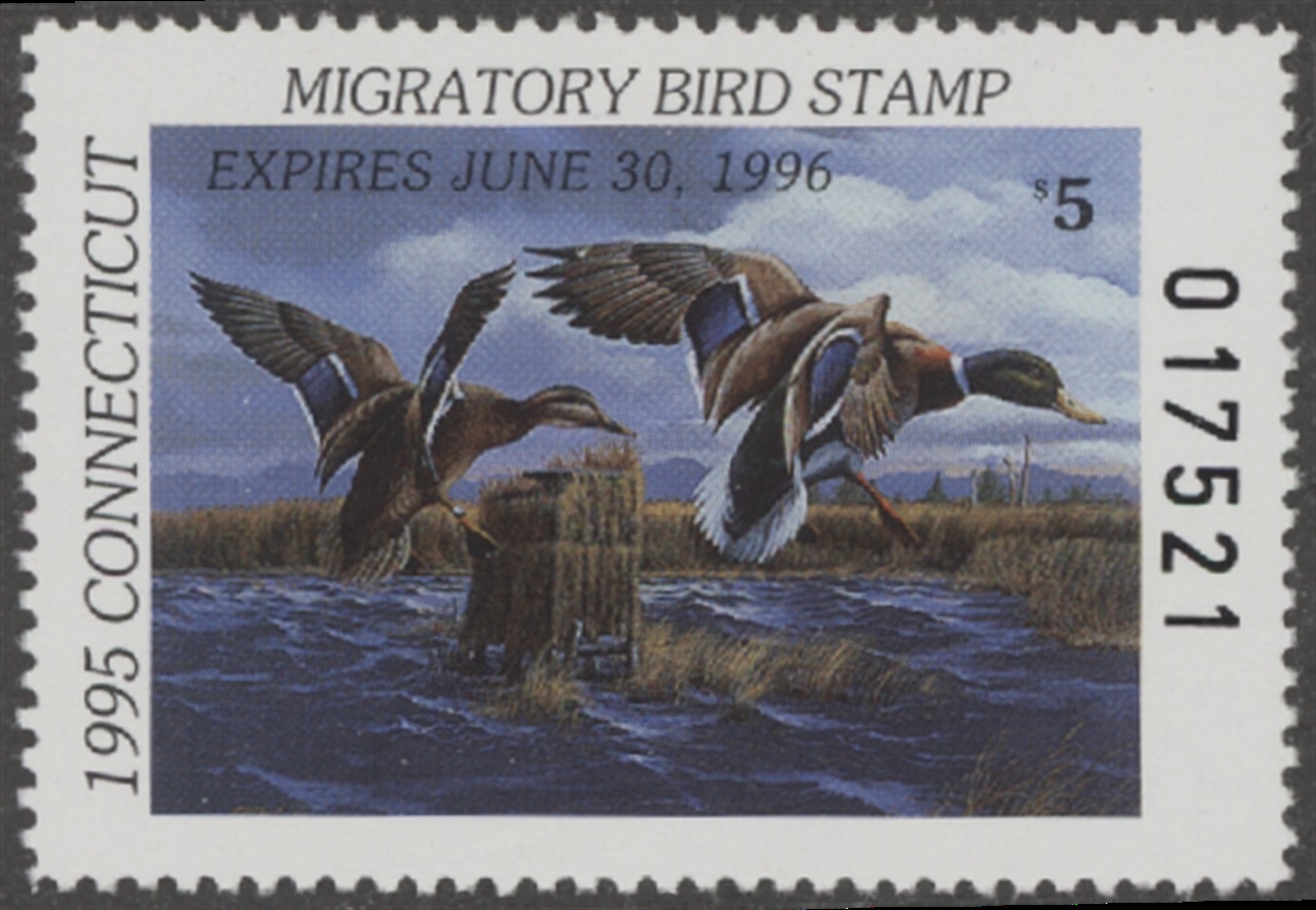 CT3 1995 State Duck Stamp. Mint Never Hinged. Very Fine. Mallards by Philip Crowe.