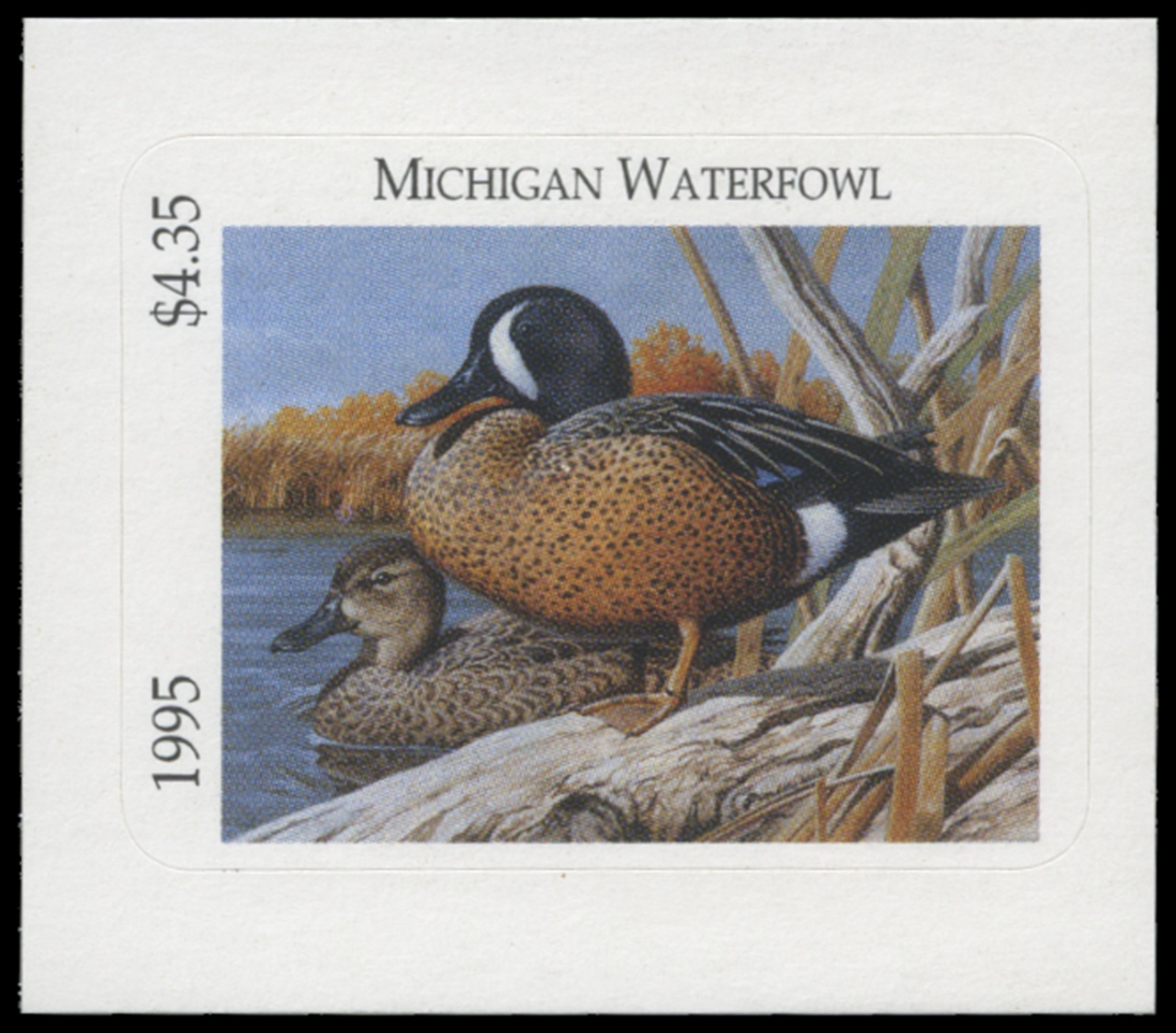 MI20 1995 State Duck Stamp. Mint Never Hinged. Very Fine. Blue-winged Teal by Rod Lawrence.
