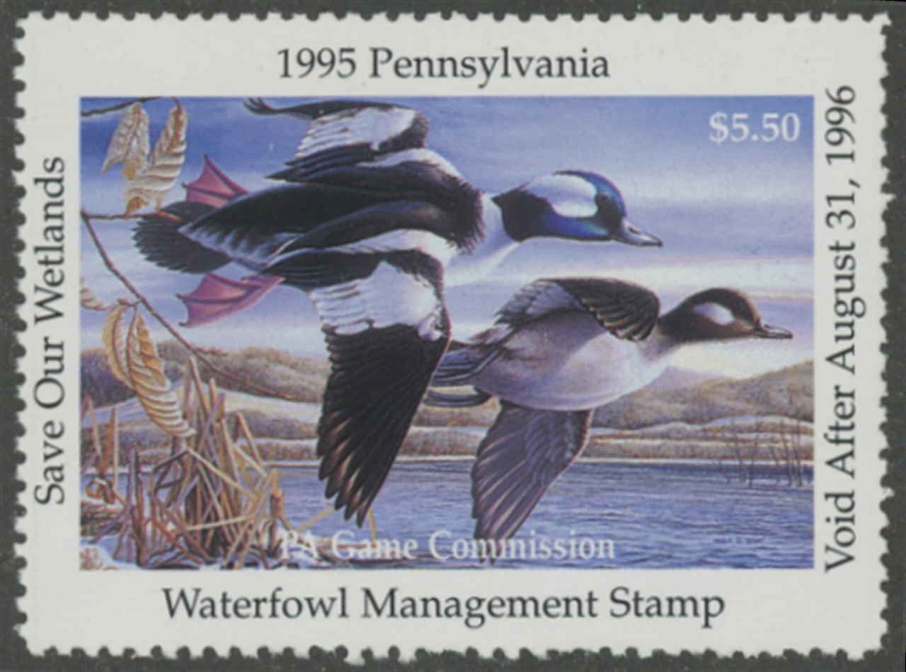 PA13 1995 State Duck Stamp. Mint Never Hinged. Very Fine. Buffleheads by Mark Bray.