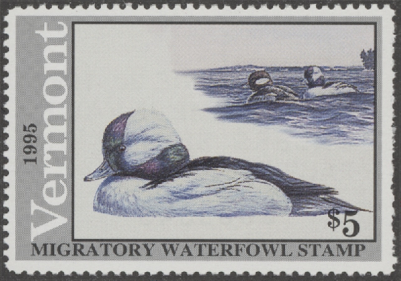 VT10 1995 State Duck Stamp. Mint Never Hinged. Very Fine. Buffleheads by Robert Mullen.