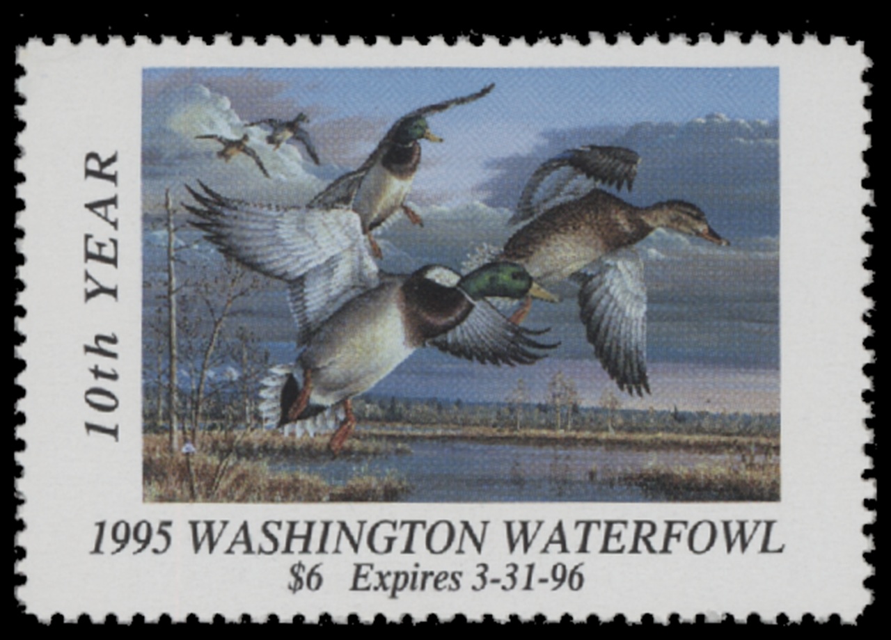 WA10 1995 State Duck Stamp. Mint Never Hinged. Very Fine. Mallards by Cynthie Fisher.