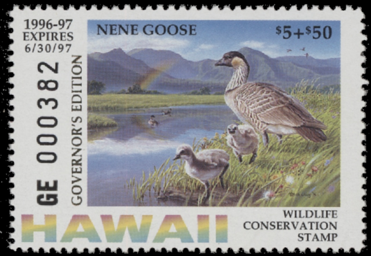 HI1G 1996 State Duck Stamp. First of State Governor's Edition. Mint Never Hinged. Very Fine.