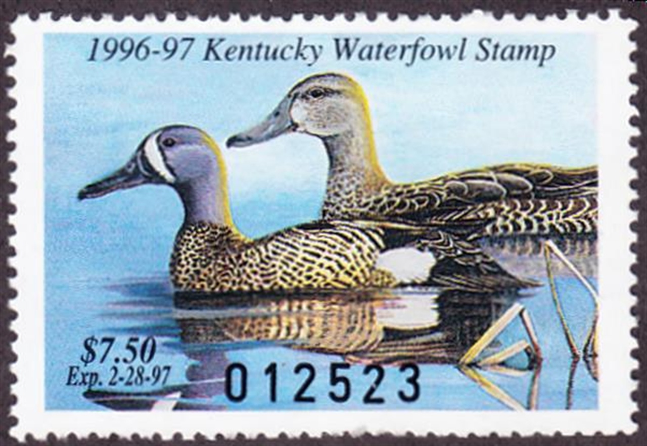 KY12 1996 State Duck Stamp. Mint Never Hinged. Very Fine. Blue-wing Teal by Laurie Parsons-yarnes.