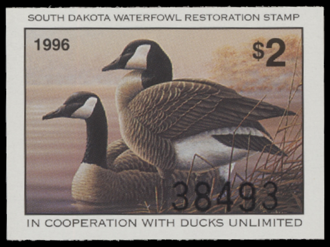 SD14 1996 State Duck Stamp. Mint Never Hinged. Very Fine. Canada Geese by Russ Duerksen.