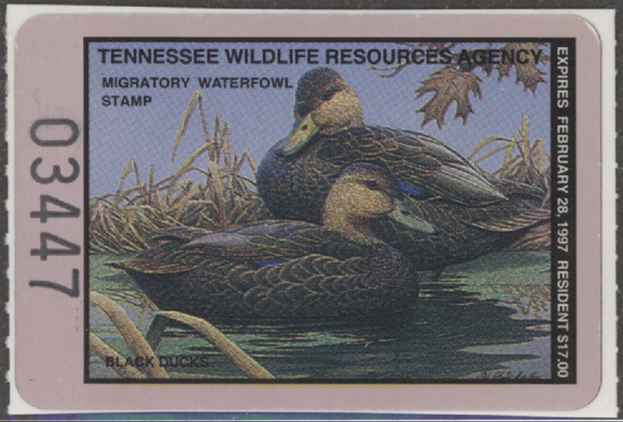 TN18 1996 State Duck Stamp. Mint Never Hinged. Very Fine. Black Ducks by Rob Leslie.