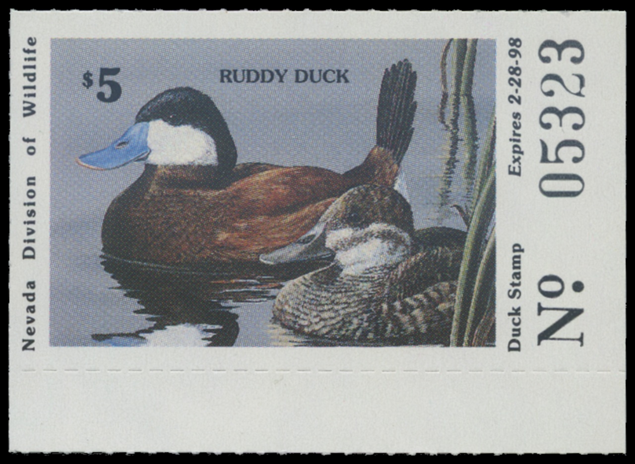 NV19 1997 State Duck Stamp. Mint Never Hinged. Very Fine. Ruddy Ducks on Pond by Brian Blight.