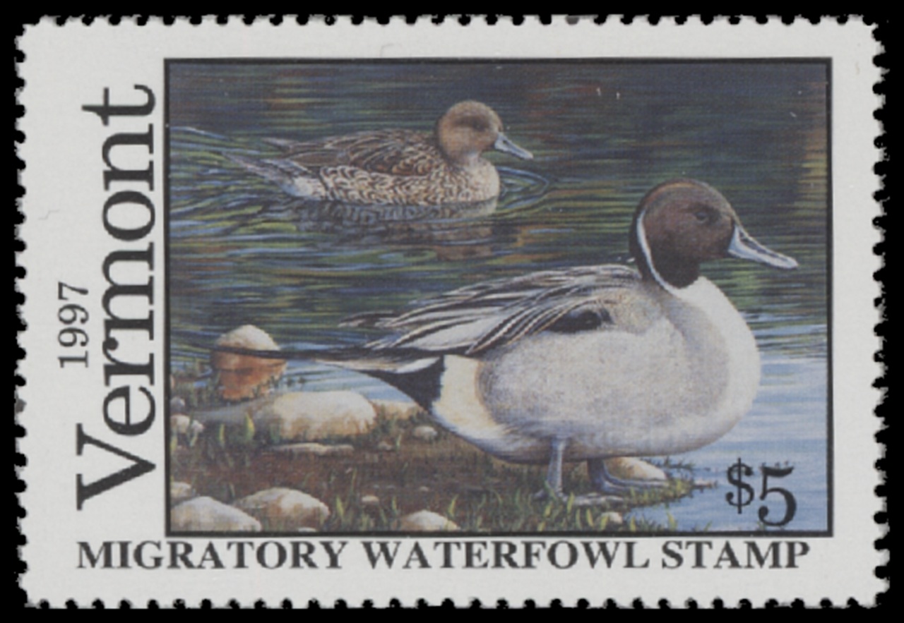 VT12 1997 State Duck Stamp. Mint Never Hinged. Very Fine. Pintails by Jim Collins.