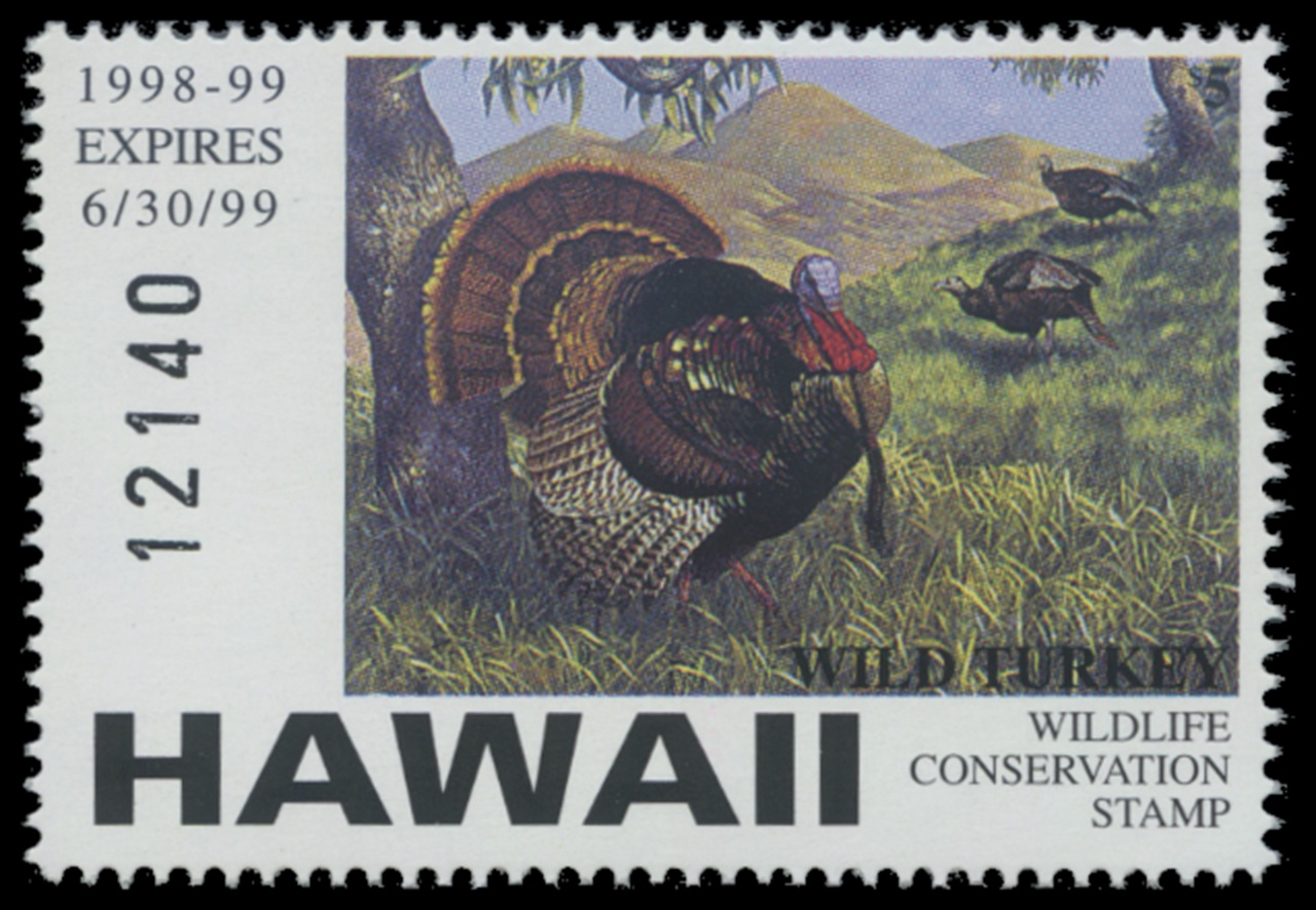 HI3 1998 State Duck Stamp. Mint Never Hinged. Very Fine. Wild Turkey on a Duck Stamp by Michael Furuya.