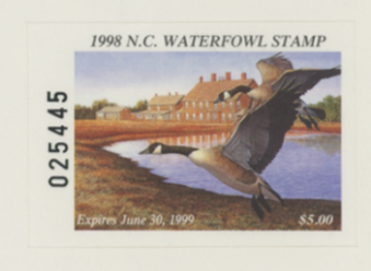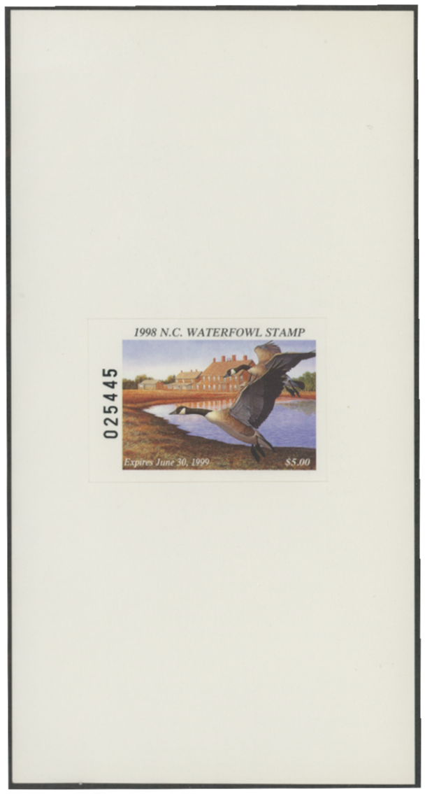 NC16H 1998 State Duck Stamp Self Adhesive on Card. Mint Never Hinged. Very Fine.