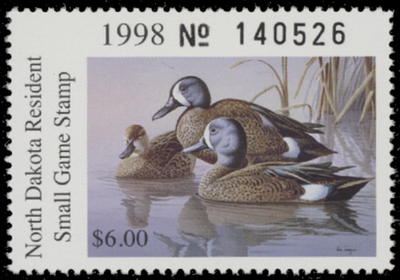ND17 1998 State Duck Stamp. Mint Never Hinged. Very Fine. Blue-wing Teal by Ronald J. Louque.