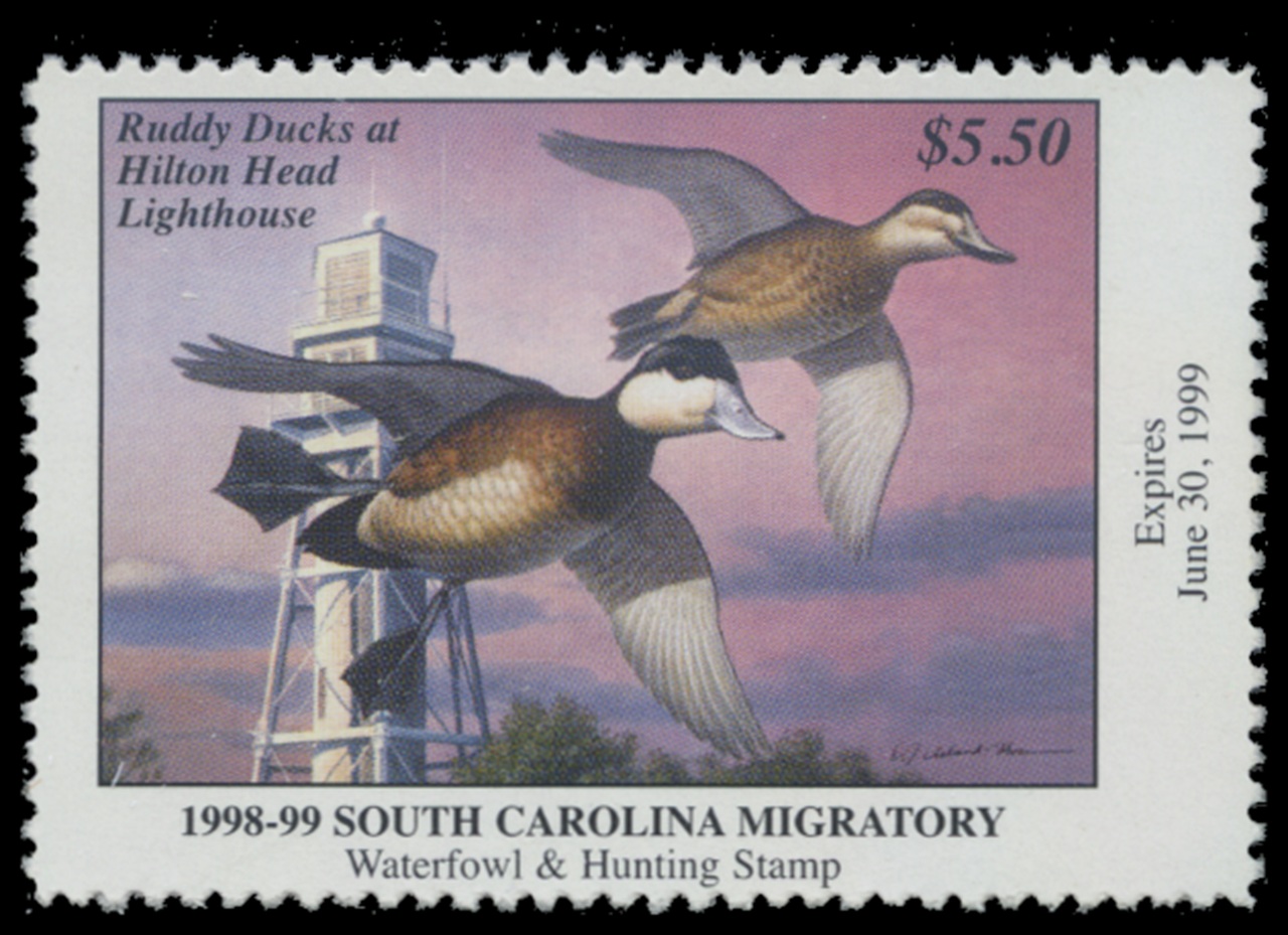 SC18 1998 State Duck Stamp. Mint Never Hinged. Very Fine. Ruddy Ducks by D.J. Cleland-hura.