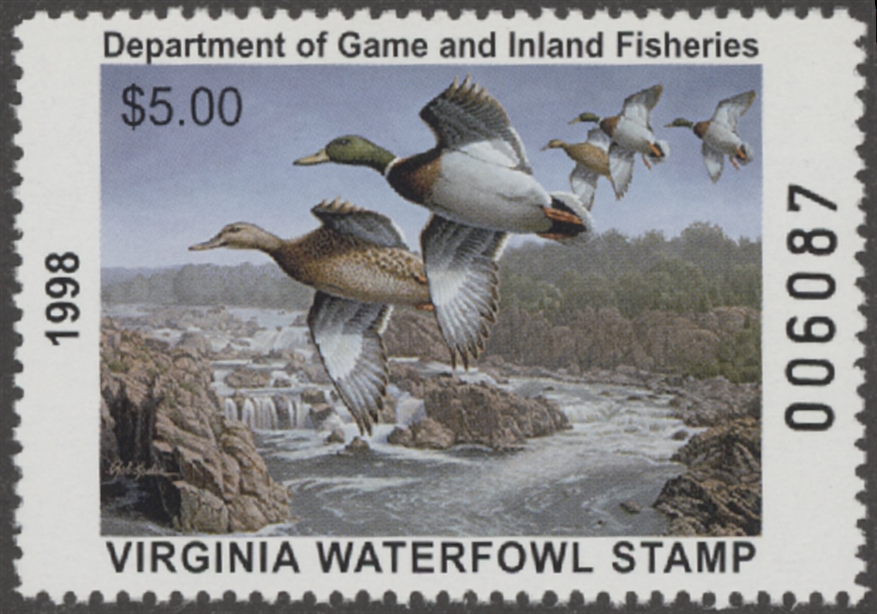 VA11 1998 State Duck Stamp. Mint Never Hinged. Very Fine. Mallards by Rob Leslie.