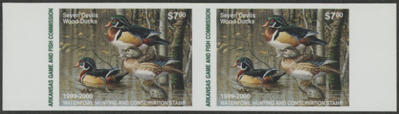 AR19P 1999 State Duck Stamp Imperforate Proof Pair. Mint Never Hinged. Very Fine.