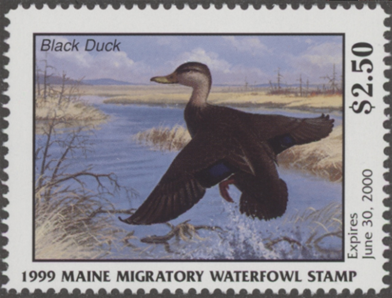 ME16 1989 State Duck Stamp. Mint Never Hinged. Very Fine. Black Duck by Rick Alley.