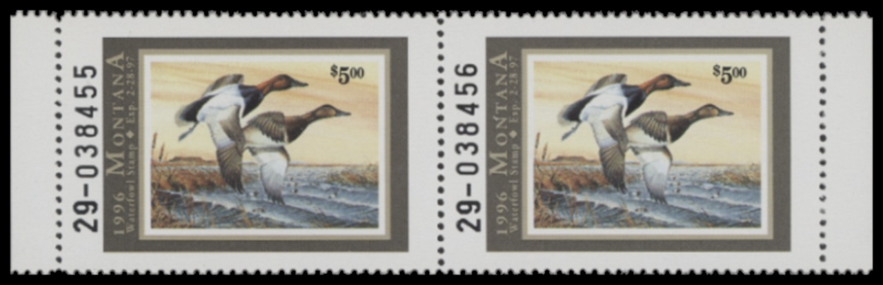 MT14 1999 State Duck Stamp Booklet Pair with Left and Right Selvage. Mint Never Hinged. Very Fine. Goldeneyes by Cliff Rossberg.
