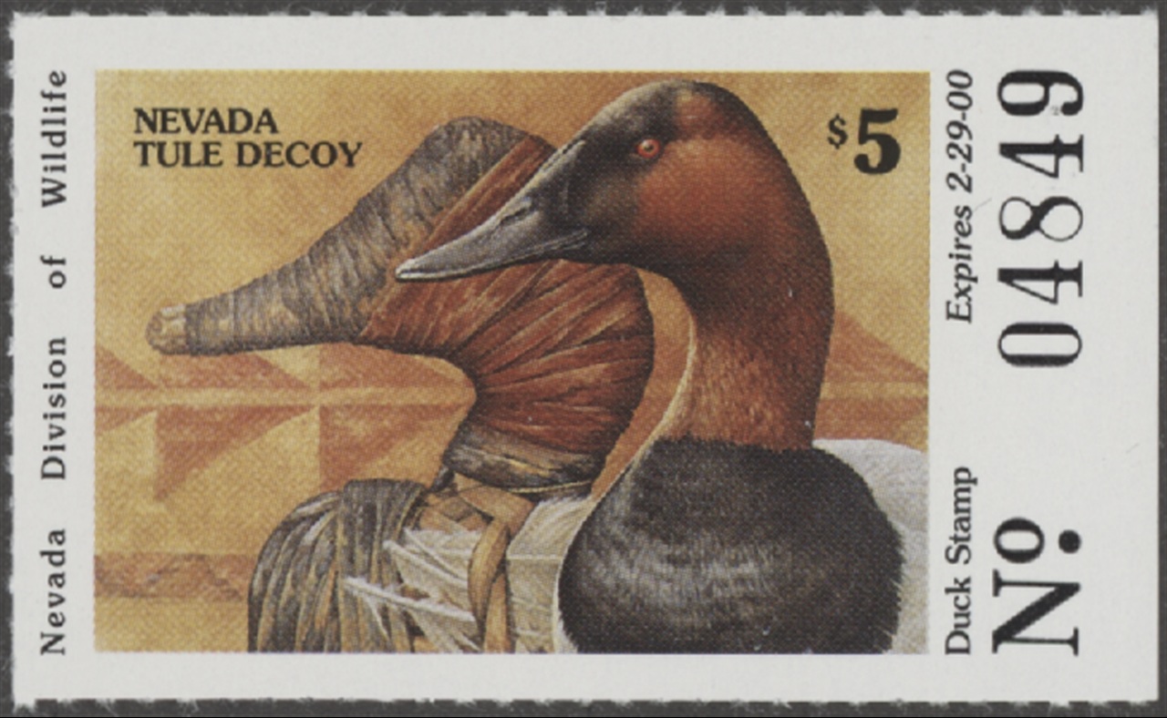 NV21 1999 State Duck Stamp. Mint Never Hinged. Very Fine. Canvasback Decoy by Sherrie Russell Meline.