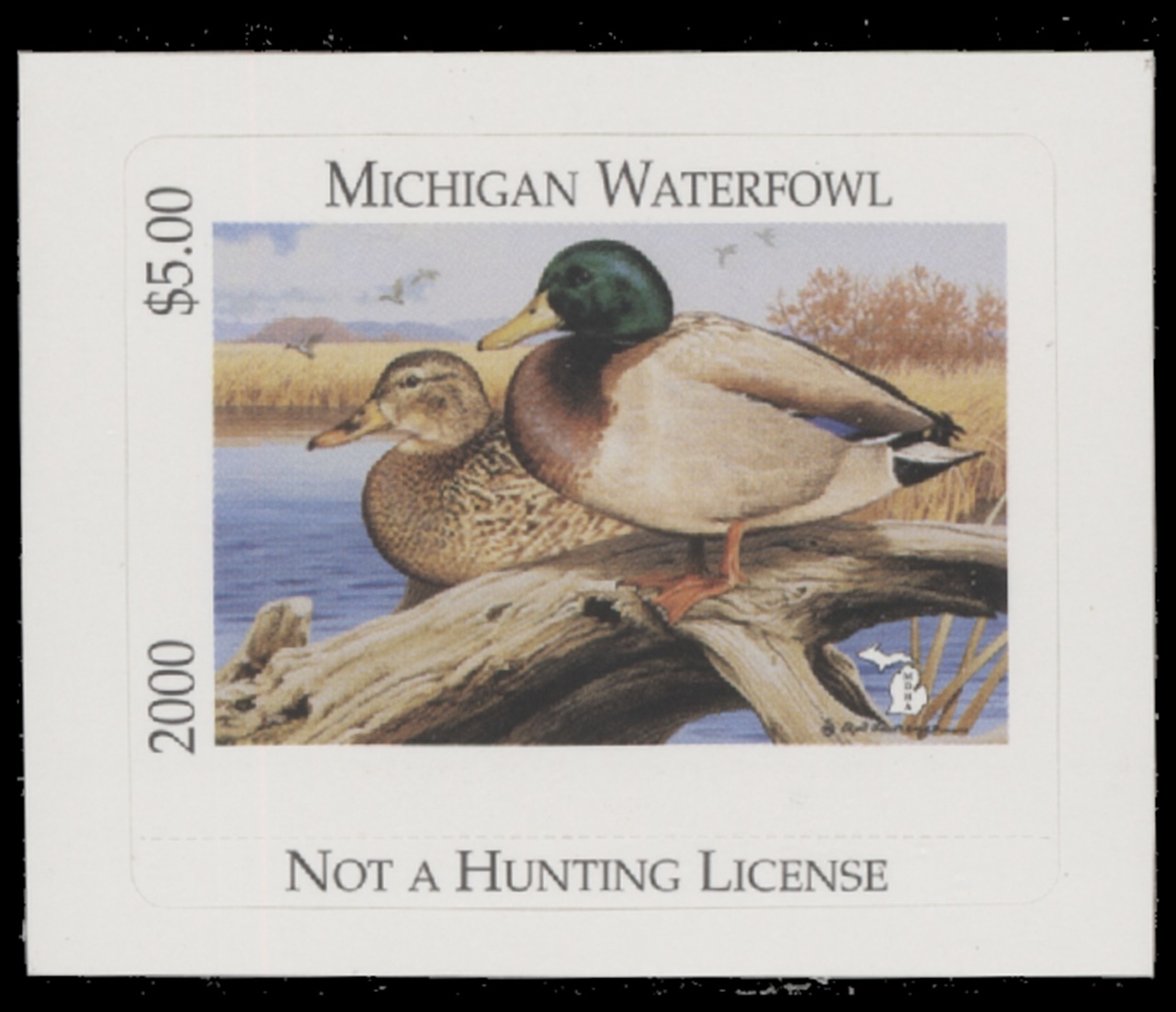 MI25 2000 State Duck Stamp. Mint Never Hinged. Very Fine. Mallards by Rod Lawrence.