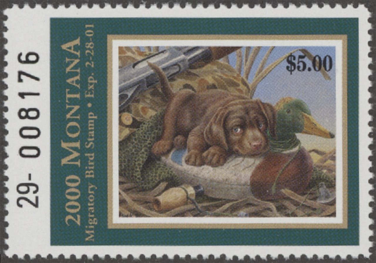 MT15 2000 State Duck Stamp. Mint Never Hinged. Very Fine. Retriever Puppy and Decoy by Joe Thornbrugh.
