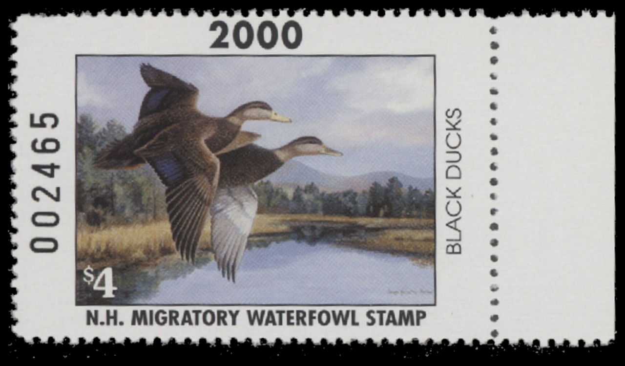NH18 2000 State Duck Stamp. Mint Never Hinged. Very Fine. Black Ducks by Susan Knowles Jordan.