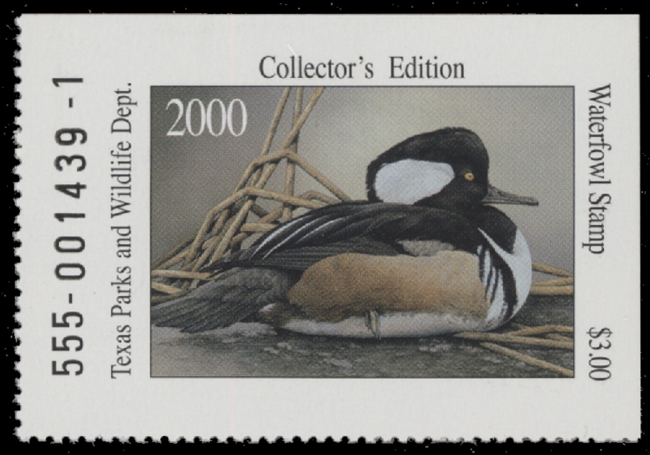 TX20 2000 State Duck Stamp. Mint Never Hinged. Very Fine. Merganser by Sherrie Russell Meline.