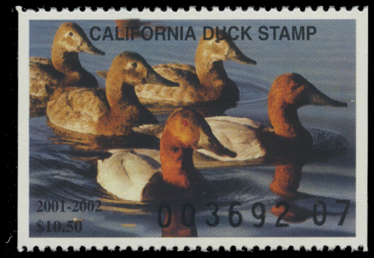 CA31 2001 State Duck Stamp. Mint Never Hinged. Very Fine. Canvasback by Robert Steiner.